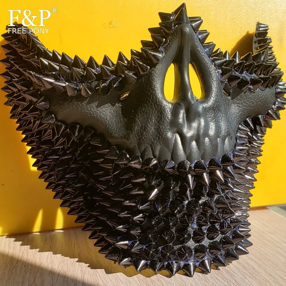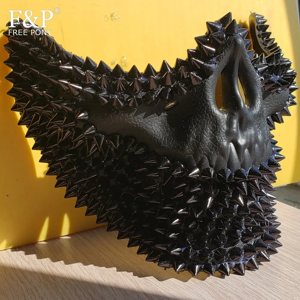 BEST QUALITY Burning Man Festival Steampunk Black Skull Rivet Spike Face Mask Drag Queen Halloween Costume Gogo