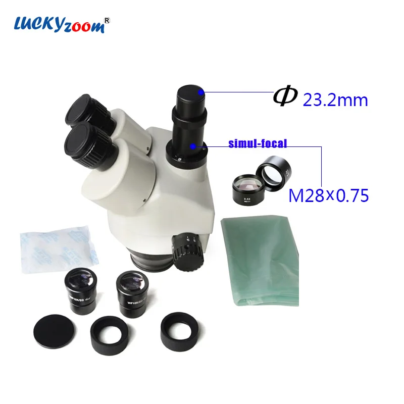 Best Seller Brand 3.5X-45X Simul-Focal Trinocular Stereo Microscope Head Continuous Zoom Microscope Head Trinoc