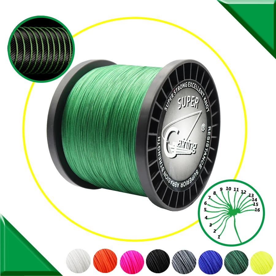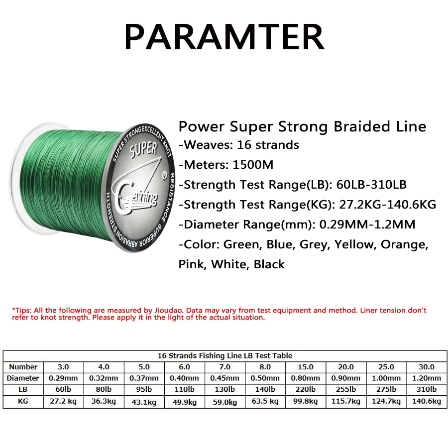 Gaining 16 Strands 1500M Braided Fishing Wire 60LB-310LB Super Strong Multifilament PE Fishing Line