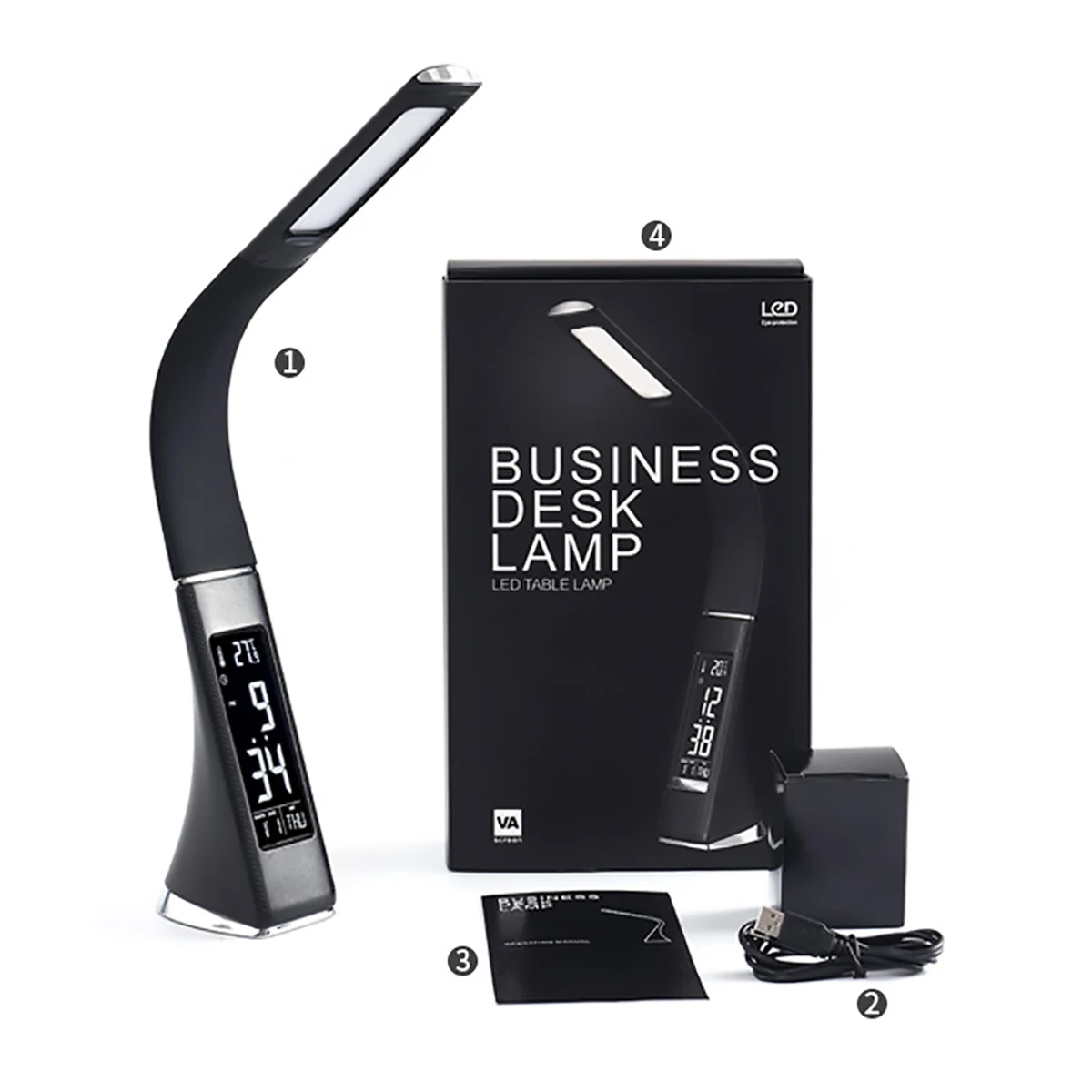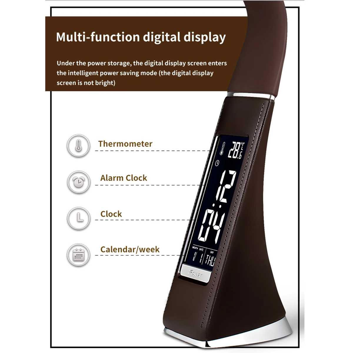 Dimming Touch Skin Texture Reading Light with alarm clock Black Business LED Table Desk Light LCD D